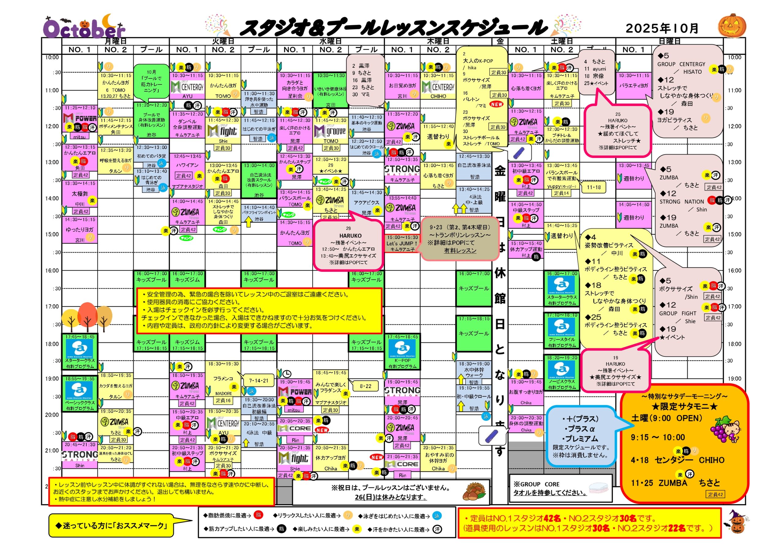 10月のレッスンスケジュール