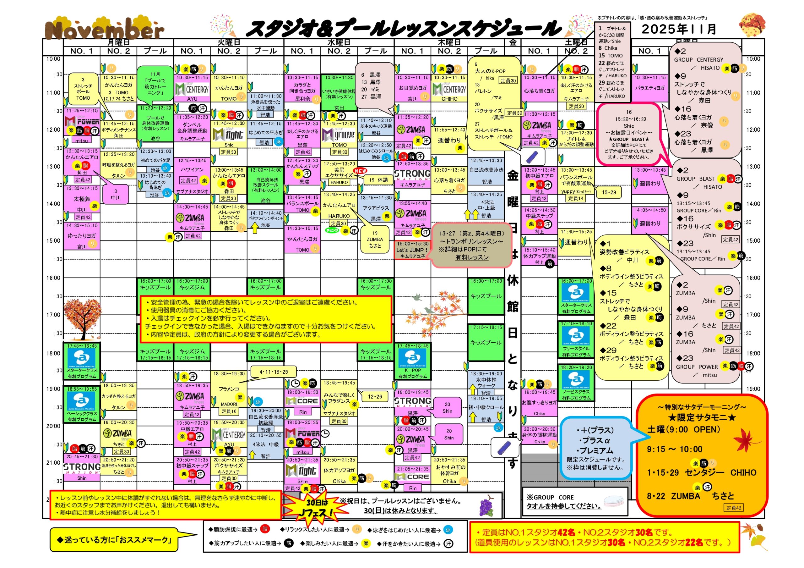 11月のレッスンスケジュールのご案内